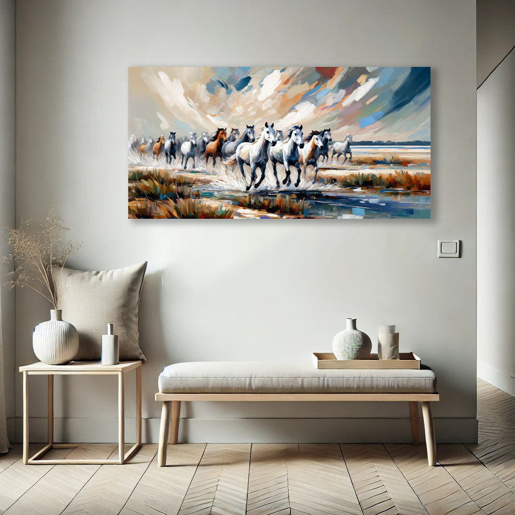 Vous pourrez associer votre tableau de paysage à une décoration naturelle avec du bois, des matières brutes et des tons doux pour une ambiance chaleureuse et harmonieuse.